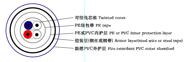 煤礦用聚乙烯絕緣細(xì)圓鋼絲鎧裝阻燃聚氯乙烯護(hù)套電話電纜 PE insulated fine round steel wire armored fire retardant PVC sheathed telephone cables for use in mines |