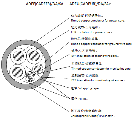 乙丙絕緣纖維編織加強層聚氨脂護套船岸連接電纜,DA/SA型 EPR insulated fiber braided reinforcement TPU sheathed Ship-to-Shore Connection Cable,Type DA/SA |