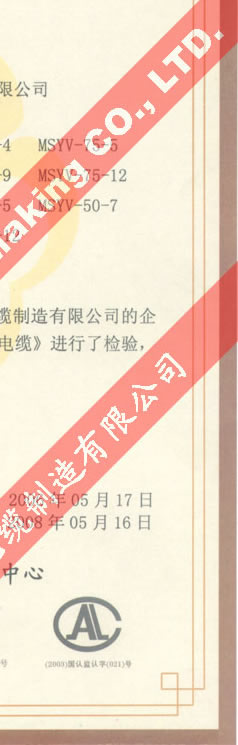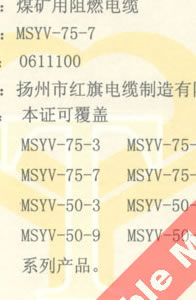 國家采煤機械質(zhì)量監(jiān)督檢驗中心檢驗合格證--煤礦用阻燃電纜(MSYV-75-7)