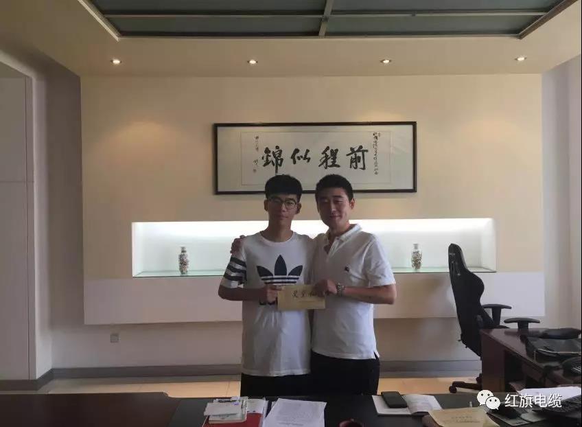 2018年7月30日,揚州市紅旗電纜集團為2018年考取重點院校的公司雙職工路桂林、葉宏蘭之子路寶健發(fā)放了獎學(xué)金4000元,送上公司對員工家庭的一份關(guān)愛和祝福。集團總裁陳冠瑜先生親自為其頒發(fā)了獎學(xué)金,祝福他在以后的人生道路上前程似錦,同時也以一個過來人的身份對其在今后的求學(xué)生涯提出了寶貴的意見和殷切的期盼。