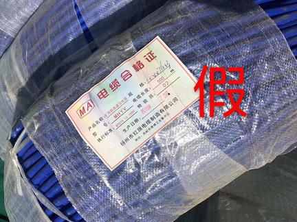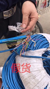 1、假冒我公司的煤礦用阻燃通信電纜主要特征:電纜導體嚴重虧方、外護套標識內容不全、字體偏小、部分電纜護套上打印我公司廠名漢語拼音的縮寫”YZHQDL 或YZHQ、合格證上信息不全且文案不同等等。